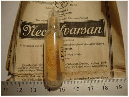 В 1910 г. врачу, бактериологу, биохимику и директору Исследовательского института химиотерапии Паулю Эрлиху (1854-1915) в результате многочисленных опытов удалось синтезировать антибактериальный препарат на основе мышьяка оказывающий бактерицидный эффект на возбудитель сифилиса в условиях in vitro. Данный препарат получил название сальварсан (от лат. salvatio спасение) или препарат 606. После дальнейших исследований П. Эрлих в 1912 г. разработал видоизмененный вариант этого препарата неосальварсан или препарат 914.