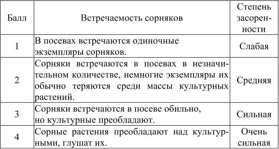 Таблица 2 Шкала глазомерной оценки численности сорняков