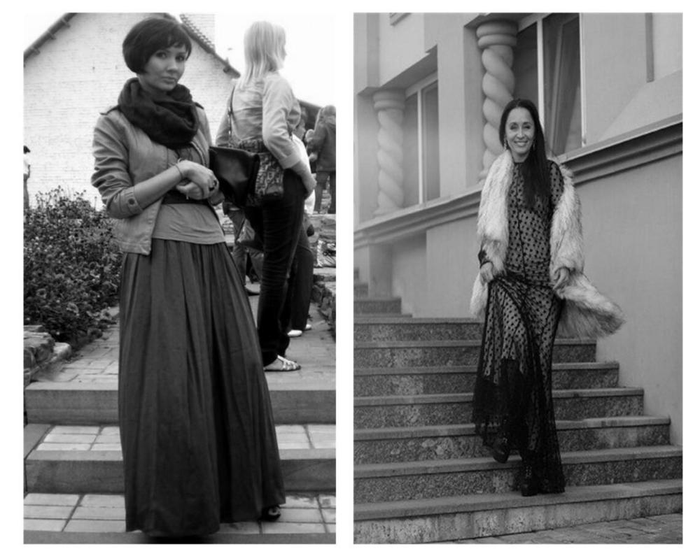 На рисунке 1 представлены две вариации уличной моды города Казани. В ансамблях одежды прослеживаются черты татарской культуры. В первом случае они проявляются в виде длинной юбки в сборку, шейного объемного платка, массивных колец на пальцах. На втором варианте национальные традиции прослеживаются не только в длине изделия, но и в богатой фактуре платья и меха, в контрасте цвета и фактуры, а также в наличии объемных ювелирных украшений. В обоих вариантах мы видим гармоничные образы, которые не противоречат современным тенденциям, но и одновременно создают особый «казанский», пропитанный национальным колоритом.