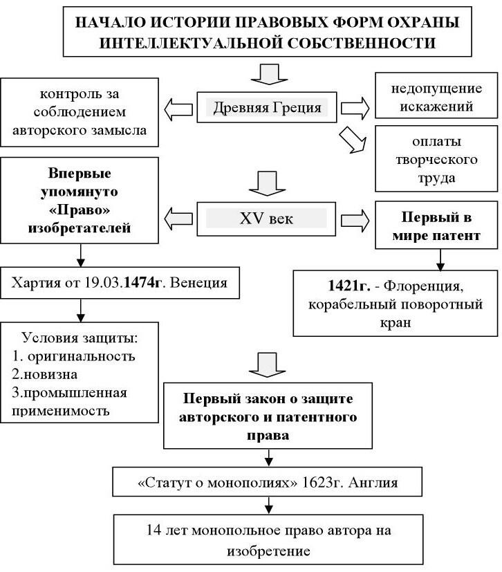 Рис. 1. История развития правовых форм охраны интеллектуальной собственности