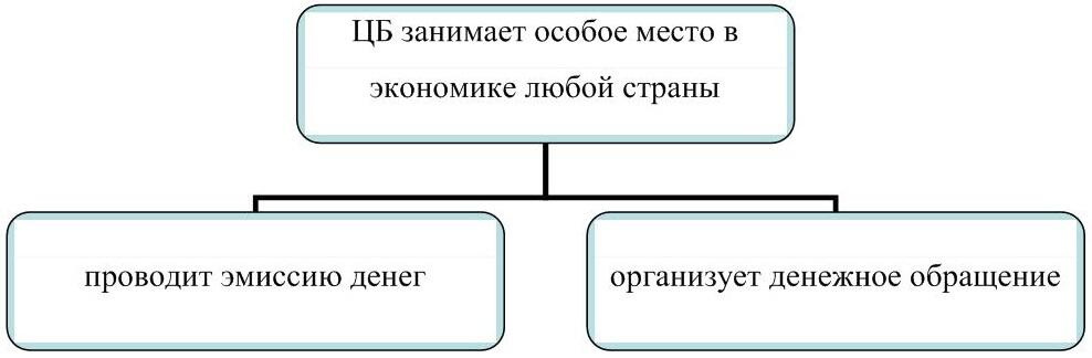 Сегодня центральный банк ключевой элемент финансово-кредитной системы любого развитого государства. Как и всякий банк, центральный банк функционирует в сфере обмена. Создавая свой продукт в виде наличных денег и безналичных платёжных средств, эмитируя их в обращение, центральный банк даёт возможность для непрерывного кругооборота и оборота капитала экономических субъектов, непрерывного процесса производства, распределения, перераспределения и потребления общественного продукта. Он выступает проводником официальной денежно-кредитной политики. В свою очередь, денежно-кредитная политика наряду с бюджетной составляет основу всего государственного регулирования экономики.