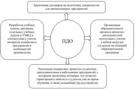 Проектно-деятельностное образование позволяет готовить инновационно-ориентированных специалистов высокого уровня, способных без дополнительной переподготовки на производстве решать конкретные задачи предприятия-заказчика, в том числе проводить научные исследования и разрабатывать бизнес ориентированные проекты, в том числе и с участием студентов. Интегрирование с вузовской наукой позволяет формировать из таких специалистов бизнес-ячейки, как самостоятельные, так и в рамках действующего производства, привлекая их в качестве новой рабочей силы в малые предприятия на базе университета.