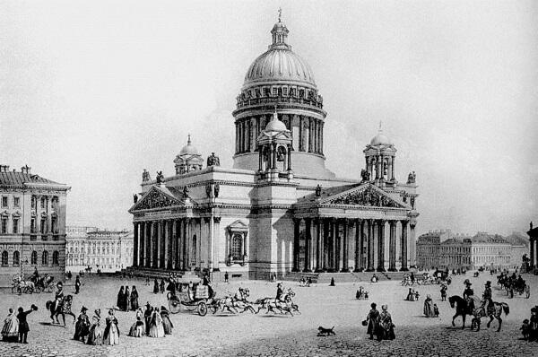 Подле Исаакиевского собора скитается призрак зодчего Монферрана. Ему было предсказано, что он умрет сразу, как достроит собор. На протяжении сорока лет, пока продолжалось строительство, тень гигантского Исаакия нависала над будущностью выдающегося зодчего. В Петербурге ядовито посмеивались: «Потому-то он так долго и строит, что знает предсказание». Собор, заложенный в 1818 году, торжественно освятили в 1858 году. На церемонию прибыла царская семья. И тут якобы Александр II сделал замечание Монферрану за «ношение усов», что в то время разрешалось только военным. Архитектор всерьез расстроился, почувствовал себя плохо и, не дожидаясь окончания праздничной церемонии, ушёл домой. Спустя месяц Монферран скончался.