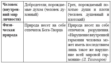 Основные признаки (характеристики) двух основных религиозно-философских представлений о мире (бытии) по Л. А. Тихомирову