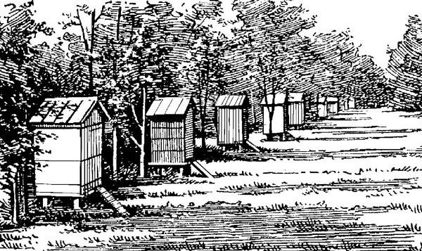 Ульи на пасеке располагают в зависимости от размера площадки.