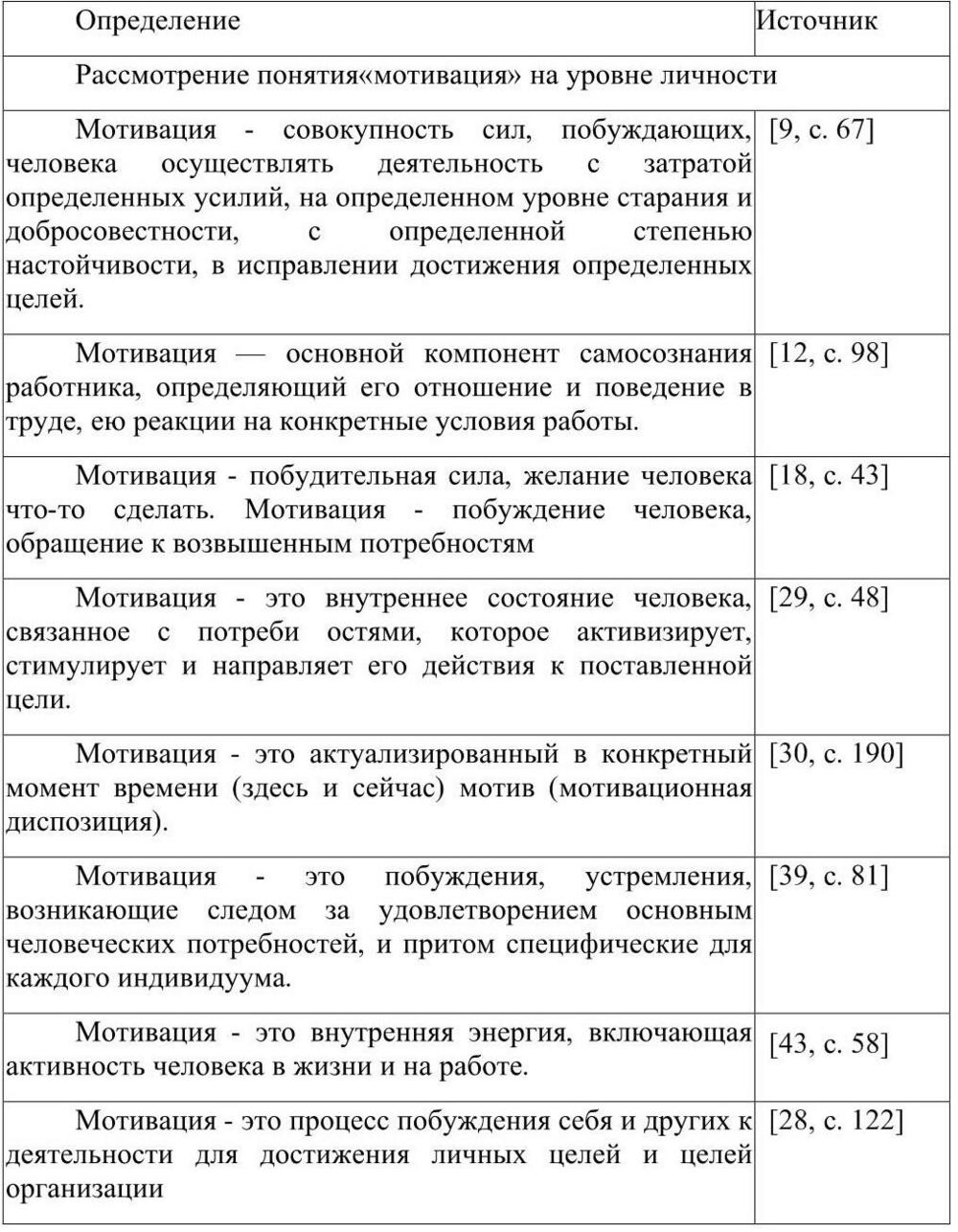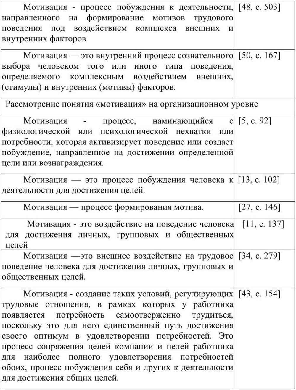Таблица 2 Подходы к понятию мотивации