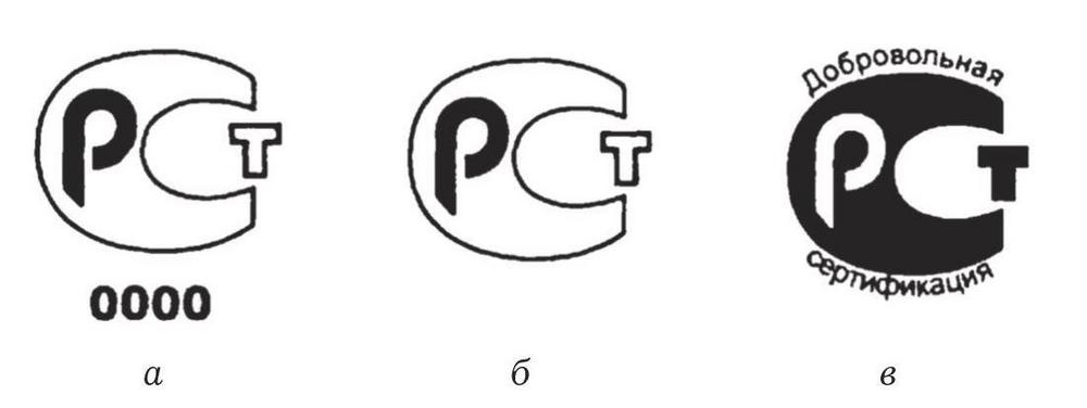 Рис. 1.1. Знаки соответствия в системе ГОСТ Р: а при обязательной сертификации; б при декларировании соответствия; в при добровольной сертификации