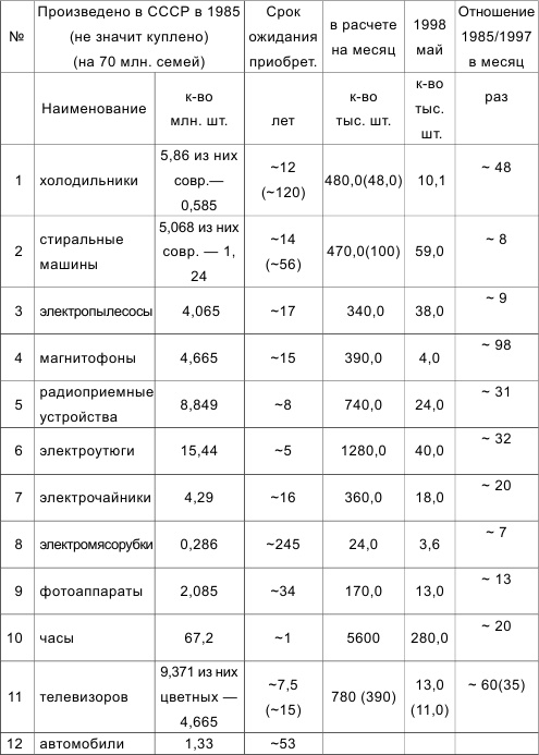 А что происходит сейчас? Производство товаров потребления упало более чем в десять раз. Народ пребывает в состоянии душевной лени и растерянности. «Мечта о коммунистическом завтра», где можно ничего не делать, заменилась ожиданием, что в результате реформ как по мановению волшебной палочки все изменится. Естественно этого быть не может.