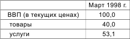 Структуру произведенного ВВП в марте 1998 г. характеризуют следующие данные в процентах: