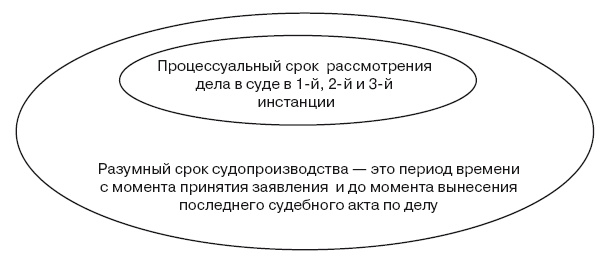 Таким образом, процессуальный срок и разумный срок судопроизводства соотносятся как частное и общее, где частное это процессуальный срок, установленный законодателем для рассмотрения той или иной категории дел, и фактически затраченное время на рассмотрение дела по существу в той или иной инстанции, а разумный срок судопроизводства это оценочная правовая категория, которая включает в себя весь этот период времени.