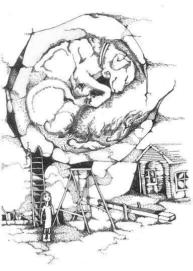 Как-то раз в деревне за рекой в одном доме случился пожар. Люди говорили, что все хозяева сгорели заживо, ничего не почувствовали спали. У них во дворе жили две собаки. Первая Лайка породистая белая лайка, пушистая, хвост бубликом. А второй пес овчарка, уши торчком и хвост пистолетом. В моем воображении он был ну вылитый волк!