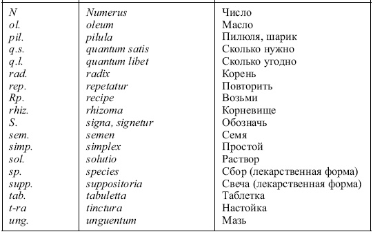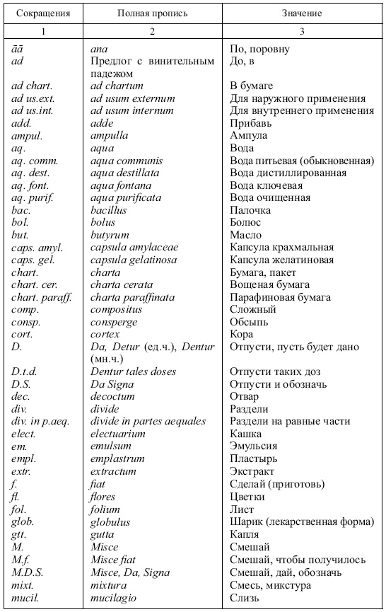 Указания для фармацевта сокращаются максимально, для чего существует ряд условных сокращений (табл. 1.2).