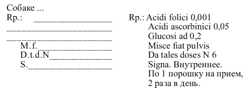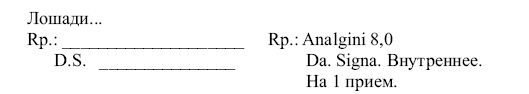 для повторного отпуска лекарства вверху слева или справа бланка: Repetatur пусть будет повторено, Non repetatur не повторять. Эти надписи скрепляются подписью врача.
