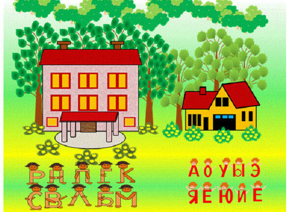Братья с интересом стали наблюдать, как буквы выбирали себе дома. Они интуитивно сплачивались в определённые группы. Гласные буквы выбрали дом поменьше, согласные большой дом. Никто не ссорился, каждая буква выбрала себе комнатку и стала приводить её в порядок. Буквы были очень неприхотливы, поэтому быстро управились с делами и стали осматривать окрестности.