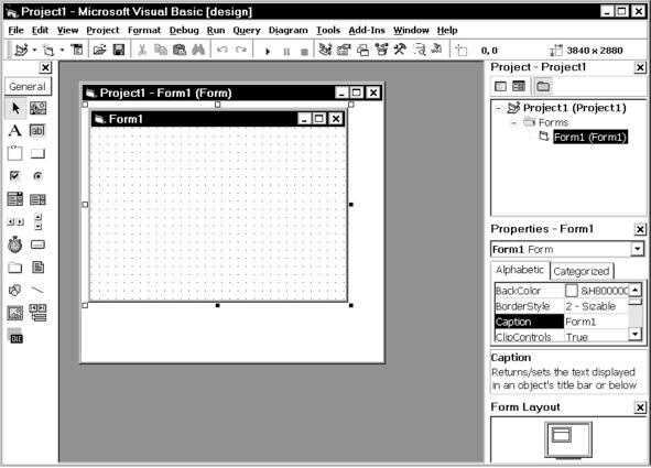 Перечислим объекты интерфейса среды программирования Visual Basic, видимые в настоящий момент: