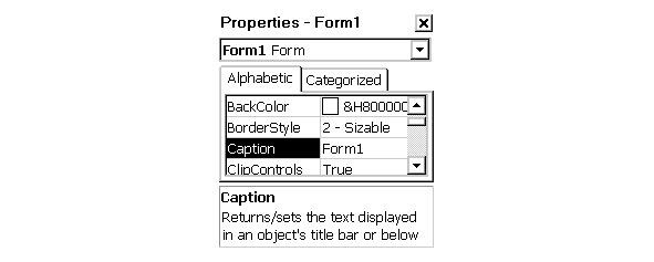 Чтобы было удобнее ориентироваться в большом количестве информации, у списка свойств предусмотрено две вкладки, позволяющие выбрать порядок сортировки: Alphabetic (Алфавитный) или Categorized (По категориям). Наконец, под списком свойств находится подсказка о назначении свойства, выделенного щелчком мыши.