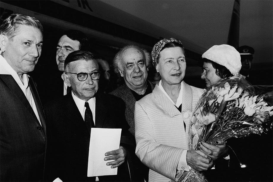 Жаль-Поль Сартр и Симона де Бувуар. На заднем плане встречающие их Авраам Шленский и Лея Голдберг.