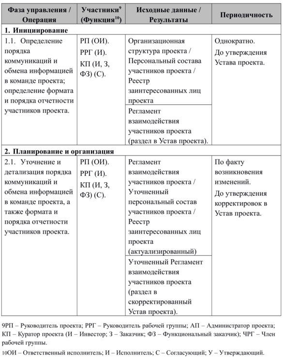 Порядок взаимодействия (коммуникации) участников проекта описывается в виде соответствующего регламента, который включается в Устав проекта.