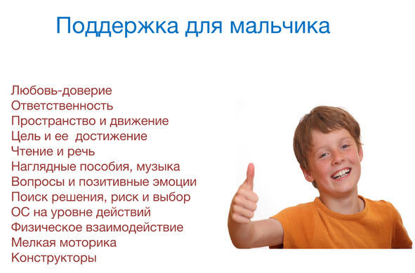 Пятый шаг связан с созданием системы поддержки для ребенка очень важна поддержка взрослых. И от того, насколько родитель готов поддерживать ребенка, зависит развитие способностей и качеств ребенка.