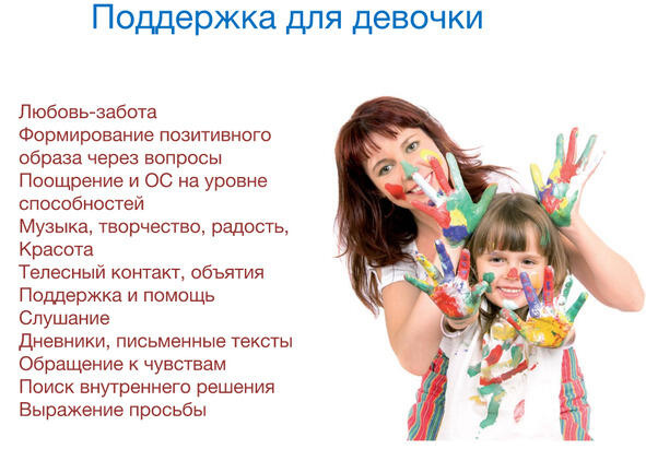 Поддерживающей средой для девочки может служить, например, музыка, творчество, радость и красота и для девочек важно находиться в этой атмосфере (рис. 3). Еще одной формой поддержки может служить обращение к чувствам через письма и дневники. И это позволяет нам задавать девочкам вопросы: «А что ты чувствуешь? Насколько тебе это нравится?» Девочки достигают целей через радость и удовольствие.