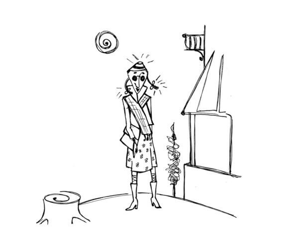 в сумочке очечник, у ног ее скворечник.