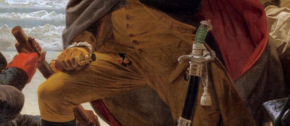 Но некоторых ретивых педагогов привлекал один участок на этом гигантском полотне а именно область паха Вашингтона, где были изображены два округлых украшения цепочки от часов красного цвета. Известны случаи, когда школьные администраторы требовали «подвергнуть цензуре» изображения этой картины, поскольку им казалось, что эта деталь, прикреплённая к штанам Вашингтона, могла вызвать у некоторых учеников ассоциации с мужскими гениталиями. В некоторых случаях организовывалась даже массовая закраска этой детали вручную в выпущенных тысячными тиражами учебных пособиях.