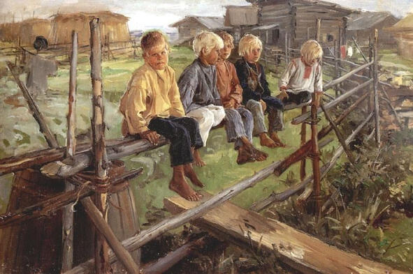 Илларион Михайлович Прянишников, Воробьи (дети на изгороди), Россия, 1889