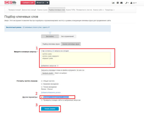 Существуют сервисы, которые помогут быстро и без ручных расчетов определить конкурентность ключевых фраз.