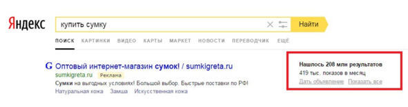 Чтобы узнать частоту запроса в месяц, воспользуемся сервисом подбора ключевых запросов Wordstat Yandex.