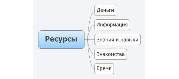 1. Материальные ресурсы (деньги и всё, что на них можно купить: дома, автомобили, бытовая техника, брёвна, мебель, книги, компьютеры, золотые украшения, дачи, сараи, гаражи, одежда, обувь, спортивные тренажёры и т.д.). Всё, что можно потрогать руками, купить и продать.
