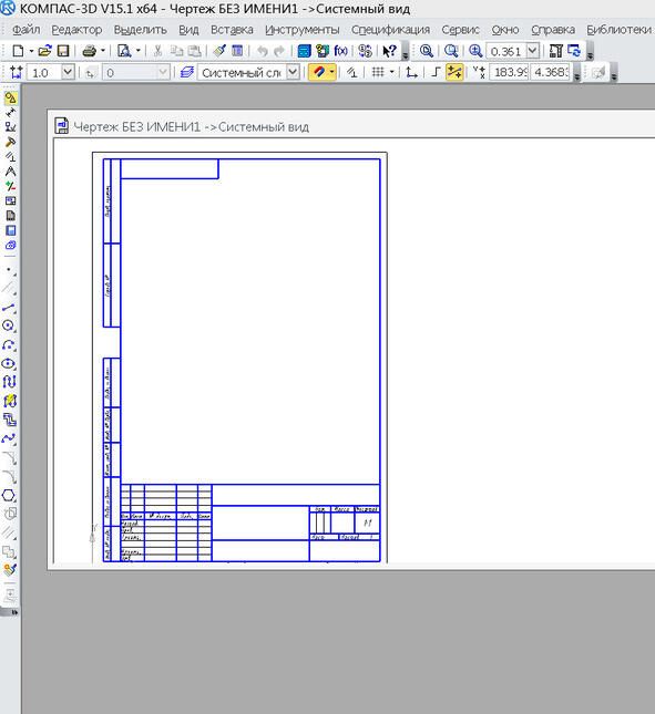 Рис.4. Экран открытого чертежа в системе КОМПАС. (это СКРИНШОТ экрана);