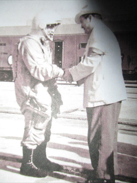 ФОТО: Г.С. ТИТОВ И ПРЕДСЕДАТЕЛЬ ГОСУДАРСТВЕННОЙ КОМИССИИ ПО КОСМИЧЕСКИМ ПОЛЁТАМ Л.В. СМИРНОВ ПЕРЕД СТАРТОМ. 6 АВГУСТА 1961 ГОДА