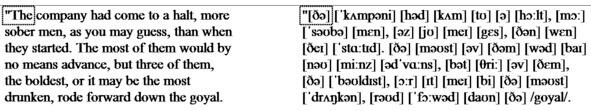 «The company had come to a halt, more sober men, as you may guess, than when they started. The most of them would by no means advance, but three of them, the boldest, or it may be the most drunken, rode forward down the goyal.