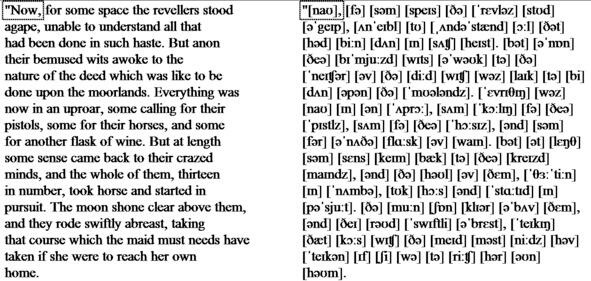 «Now, for some space the revellers stood agape, unable to understand all that had been done in such haste. But anon their bemused wits awoke to the nature of the deed which was like to be done upon the moorlands. Everything was now in an uproar, some calling for their pistols, some for their horses, and some for another flask of wine. But at length some sense came back to their crazed minds, and the whole of them, thirteen in number, took horse and started in pursuit. The moon shone clear above them, and they rode swiftly abreast, taking that course which the maid must needs have taken if she were to reach her own home.