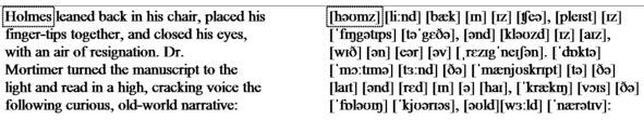 Holmes leaned back in his chair, placed his finger-tips together, and closed his eyes, with an air of resignation. Dr. Mortimer turned the manuscript to the light and read in a high, cracking voice the following curious, old-world narrative: