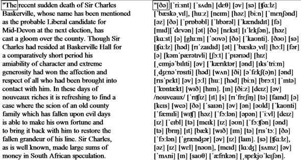 «The recent sudden death of Sir Charles Baskerville, whose name has been mentioned as the probable Liberal candidate for Mid-Devon at the next election, has cast a gloom over the county. Though Sir Charles had resided at Baskerville Hall for a comparatively short period his amiability of character and extreme generosity had won the affection and respect of all who had been brought into contact with him. In these days of nouveaux riches it is refreshing to find a case where the scion of an old county family which has fallen upon evil days is able to make his own fortune and to bring it back with him to restore the fallen grandeur of his line. Sir Charles, as is well known, made large sums of money in South African speculation.