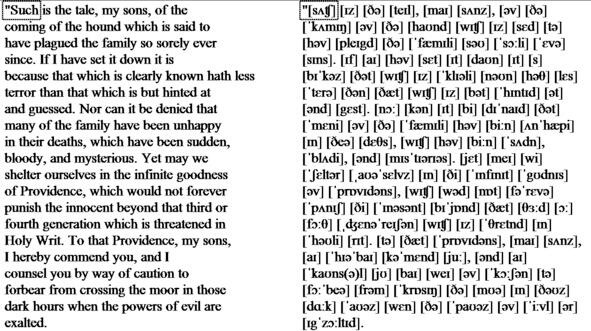«Such is the tale, my sons, of the coming of the hound which is said to have plagued the family so sorely ever since. If I have set it down it is because that which is clearly known hath less terror than that which is but hinted at and guessed. Nor can it be denied that many of the family have been unhappy in their deaths, which have been sudden, bloody, and mysterious. Yet may we shelter ourselves in the infinite goodness of Providence, which would not forever punish the innocent beyond that third or fourth generation which is threatened in Holy Writ. To that Providence, my sons, I hereby commend you, and I counsel you by way of caution to forbear from crossing the moor in those dark hours when the powers of evil are exalted.