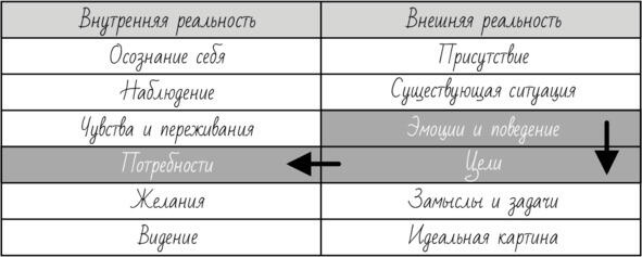 Вспомним предыдущую строку. Во внешнем мире там «поведение». На этой строке у нас «цели». Важно, чтобы поведение приводило к реализации цели и удовлетворению потребности.