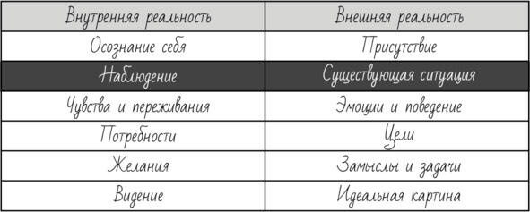 А теперь возникает закономерный вопрос что вы наблюдаете? Очевидно то, что есть. Или, как я это называю, существующую ситуацию. Я отнес ее к столбцу внешней реальности.