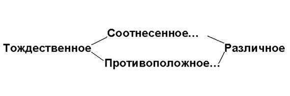 То же касается и понятия «противоположное», которое не является самостоятельным отношением, поскольку не отличается от «соотнесенного» ничем иным, кроме как выбором иной, срединной точки зрения, которая делит «градационное» на две противоположные части.