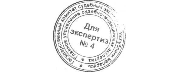 Приложение: 1. Объекты 127890901/12 (микропрепараты-2 шт., блоки-2 шт.), упакованные в картонную коробку с соответствующей маркировкой, опечатанную печатью «Для экспертиз 4».