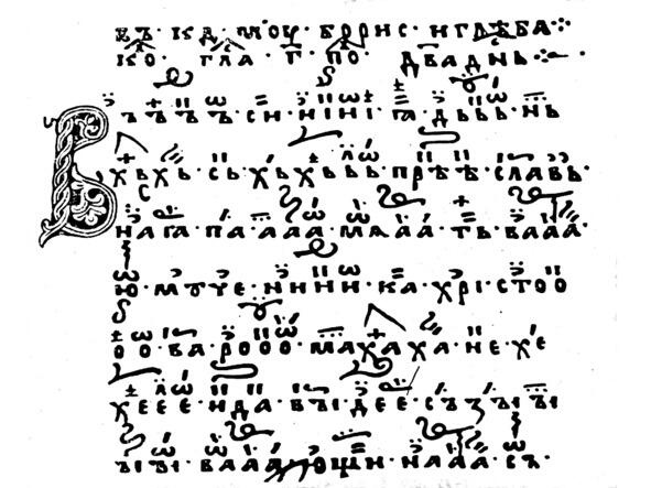 Происходит это от того, что пятилинейная система записи нот утвердилась на Руси только к концу XVII столетия. До этого же в ходу была совсем иная нотная грамота. Никаких линеек не было и в помине. Для записи нот употреблялись специальные знаки. Их так и называли «знамена». А так как музыка в Древней Руси была нераздельно связана с текстом, и не могло быть и речи о том, чтобы она существовала сама по себе, отдельно, без слов, то и систему нотного обозначения целиком именовали так: «знаменное пение».