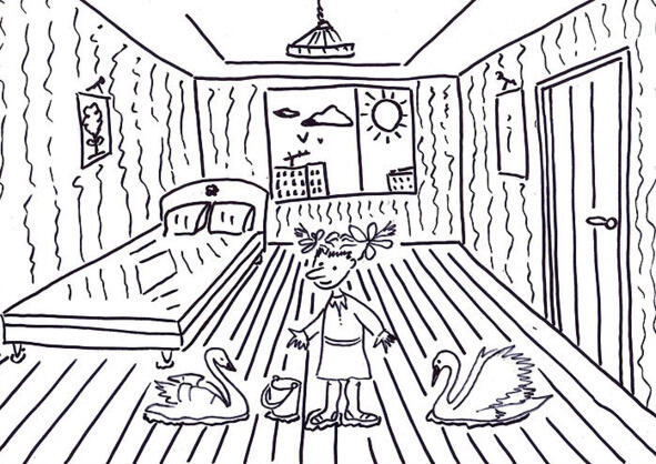 Катя передвинула лебедей на край ковра и удивлённо посмотрела на деда: