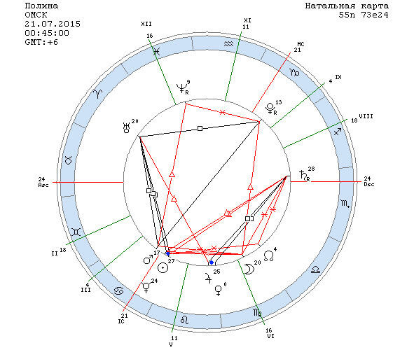 С чего начнём? Наверно со знакомства с вашей картой рождения на примере одной девочки. В нашем исследовании мы будем опираться на психологические и мировоззренческие моменты развития личности владельца этой карты рождения, однако первоначально весь тон жизни задают астрологические элементы в карте рождения. Друзья мои, кому интересно может набрать в интернете: «построить натальную карту бесплатно», ввести данные рождения девочки: 21.07.2015, Омск, время 00.45 и следить за ходом нашего исследования вместе со мной. И одновременно вы сможете понимать суть и задачи вашей карты рождения, применяя простой метод, которым пользуюсь я.