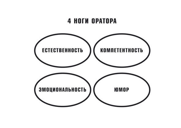 Изначально эта глава называлась «Три ноги оратора». Но однажды после моего выступления с мастер-классом на конференции подошел молодой человек, который был удивлен отсутствием в предложенной системе четвертой «ноги».