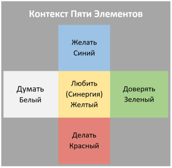 Например, кроме модели Латинского креста, мы будем активно использовать прямоугольную модель (см. прямоугольную диаграмму Контекста Пяти Элементов2).