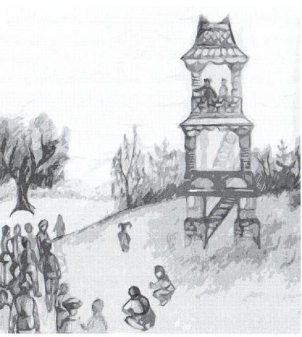 Не припомню, были ли летом у него какие-нибудь чудачества В эти длинные дни в деревне он бывал нечасто работал с другими плотниками на больших, по деревенским масштабам, стройках. Впрочем, любил прийти на огромный холм, сесть на уцелевший от некогда стоявшей там вышки фундамент и долго сидеть, изредка то ли ощупывая, то ли поглаживая старые камни. Когда я туда приходил один, он непременно звал к себе: