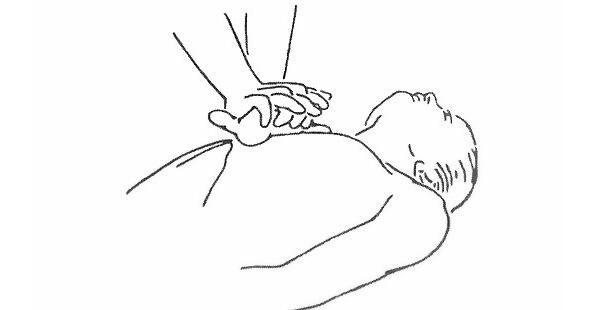 Грудную клетку обхватываем обеими ладонями (циркулярный обхват), большие пальцы на середину грудины, а остальные плотно прижимают к телу. Нажимаем большими пальцами, на глубину 34 см, от 100 и не более 120 раз.