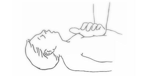 При условии, что реаниматор один, циркулярный обхват заменить на нажатие двумя пальцами одной руки (указательный и средний), одновременно поддерживая проходимость дыхательных путей второй рукой.