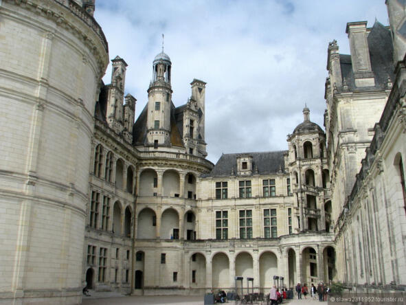 И это желание лучше всего реализовалось при строительстве замка Шамбор. Говорят, Франциск I лично принимал участие в его проектировании. По крайней мере, имя архитектора, создавшего этот архитектурный шедевр, до нас не дошло А ведь с точки зрения архитектуры замок этот представляет особый интерес. Не зря же его Франциск I задумывал как модель города идеальной красоты. И несмотря на то, что Леонардо да Винчи умер за четыре месяца до начала работ, многие исследователи творчества великого флорентийца считают, что в этом замке воплощены многие его идеи. Да и сам замок является неким зашифрованным образом Леонардо человека с могучим телом и головой, полной идей божественного полета. А почему бы и нет? Поэтому стоит только недоумевать по поводу того, что отдав столько сил, энергии, вдохновения созданию замка Шамбор, и даже не увидев окончания его работ, ведь замок строился более сорока лет (подробно о том, как возводился дворец можно посмотреть видеофильм перед началом экскурсии) Франциск I бывал здесь крайне редко, наездами.